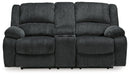 | Details | Dual-sided recliner, Pull tab reclining motion, Corner-blocked frame with metal reinforced seats, Attached cushions, High-quality foam cushions wrapped in poly fiber, Center console with storage and 2 cup holders, Polyester upholstery | |