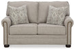 Inspired by the past but rooted firmly in the present, this loveseat complements your transitional seating area. Its versatile upholstery is delightfully detailed for a subtle herringbone effect. Designer touches like decorative nailhead trim and bun legs add traditional character. With this loveseat's reliable style and comfort, all you need to do is sit back and relax.