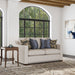 A Legacy of Luxury. Timeless sophistication meets modern versatility with the Milo loveseat, a spacious and upscale piece designed to fill any space with coziness and is built to last for generations. Featuring softly sloped arms with French seams, thoughtful welt detail on the seat cushions, and included accent pillows; customize this loveseat with hundreds of fabric choices. For distinctive style designed to be everlasting, look no further than Milo.