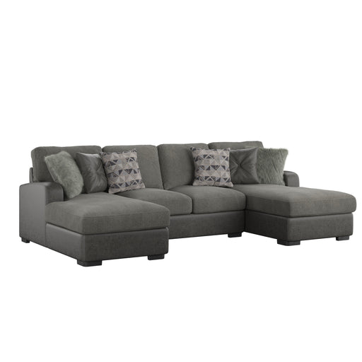 Berlin - Double Chaise Sectional - Gray Herringbone & Sanded Microfiber