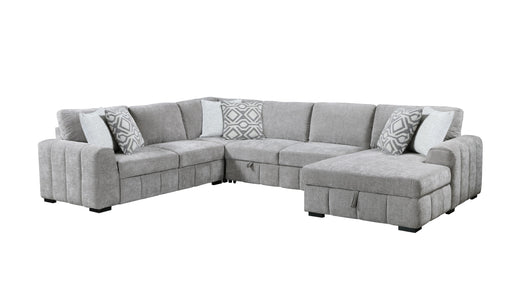 Nyhan - Upholstered Corner Sectional With Pull Out Loveseat And Storaged Chaise - Light Gray