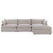 The Caplan Modular Sectional offers luxurious comfort and endless versatility. Available in 2, 3, 4, 5, and 6-piece configurations, it can be tailored to fit any space perfectly. Designed with deep seating and generously filled with feather and down, it provides an ultra-cozy lounging experience. The Caplan Modular Sectional combines modern style with plush comfort, making it ideal for both entertaining and everyday relaxation.