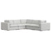 - The square throw pillows and loose, reversible, 7.5-inch-thick back cushions are stuffed with a combination of feather and fiber filling for a softer feel, while the armrests and sides of the ottoman are covered in thick foam padding for extra comfort.
