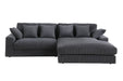 - Experience the epitome of comfort and style with our Mystic Corduroy Reversible Sectional Sofa Chaise. With a reversible chaise, you have the flexibility to configure your seating arrangement to suit your space and preferences. Whether you want to lounge on the left or right side, this sectional adapts to your needs. Included with the sectional are six plush throw pillows, adding an extra layer of coziness to your seating experience. These pillows not only provide support but also contribute to the sofa's overall aesthetic appeal. Featuring a wide seat width and seat depth, this sectional offers ample room for you and your guests to sink into comfortably and lounge while enjoying your favorite movie. Our Mystic Corduroy Reversible Sectional Sofa Chaise is more than just furniture; it's an invitation to unwind, socialize, and enjoy your living space to the fullest.