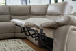 | Details | Includes 6 modular pieces: left-arm facing power recliner, console with storage, 2 armless chairs, wedge and right-arm facing power recliner , "Left-arm" and "right-arm" describe the position of the arm when you face the piece, Versatile modular pieces fit together in a variety of configurations, One-touch power control with adjustable positions, Easy View™ adjustable headrest and zero-draw USB port, Zero-draw technology only consumes power when the USB receptacle is in use, Zero-gravity mechanism allows optimum reclining comfort with infinite reclining positions at the touch of a button, Corner-blocked frame with metal reinforced seat, Attached cushions, High-quality foam cushions wrapped in poly fiber, Polyester upholstery, Console with 2 cup holders and hidden storage, Power cord included; UL Listed | |