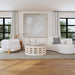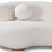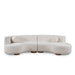 The Octavia Sectional in polyester fabric features a sleek crescent shape that brings a touch of contemporary elegance to any space. Its smooth round legs and soft, inviting lines create a modern, airy feel that enhances your living room's atmosphere. with the round accent pillows, the sectional adds comfort and style, making it the perfect centerpiece for a chic, modern environment.