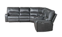Saul - Leather Aire Power Motion Sectional Sofa With USB Port Cupholder Console - Gray