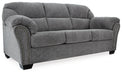 Why sacrifice comfort for style (or style for comfort) when you can have the best of both in this sofa in pewter gray. Elements include a chic divided-back design and pillow top wrapped armrests that make nodding off all too easy. Calling attention to the elegantly flared armrests—black nickel-tone nailhead trim for a punch of cool character.