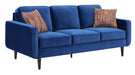 - The Jax sofa brings a bold splash of color with mid-century modern style.