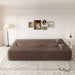 Modern Floor Sofa With 2 Pillows, Convertible Teddy Fabric Foam Filled Sleeper Sofa Bed, Full Size Folding Mattress For Living Room Guest Bed, Playroom, No Assembly Required - Brown