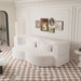 • Teddy Fabric:This sofa is made of soft and breathable teddy fabric,with a sponge structure support are both comfortable and durable.