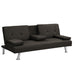 Sofa Bed With Armrest Two Holders Wood Frame, Stainless Leg Futon