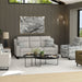 Teagan will change your opinion on motion furniture with its trimmed lines, fashionable fabrics, and thoughtful features. Each piece is designed with a contemporary frame and elevated on sleek metal sleigh legs for a modern touch. The sofa goes a step further with a built-in drop-down table featuring stainless steel cupholders and a storage drawer to combine style with practicality. Dual power functionality allows each person to separately adjust the head and foot rests to their optimum comfort. Beige and cream-flecked fabric upholsters the sofa and loveseat while coordinating recliners in a muted brown leather or patterned fabric will make you want to put Teagan front and center.