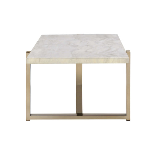 AcmeElegant Design: This table features a fixed engineered stone top with a stunning marble grain design, adding a touch of sophistication to any liv...