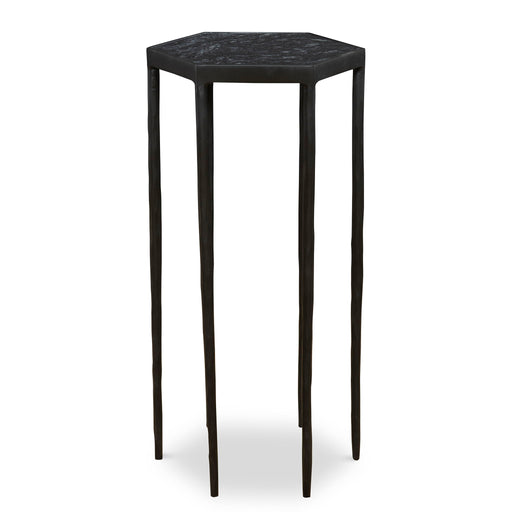UttermostThis Striking Hexagonal Table Features A Chiseled Iron Base Finished In Satin Black Paired With A Honed Black Marble Top With Natural White Veining...