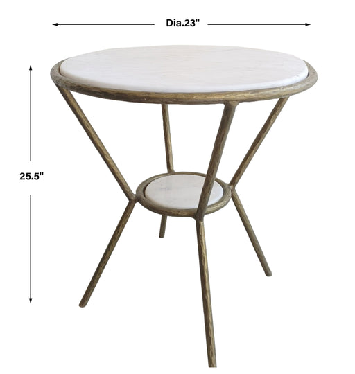 UttermostThe Refuge Accent Table Is Crafted With A Solid Chiseled Iron Frame And Finished In An Elegant Antique Gold. Paired With A Polished White Marble To...