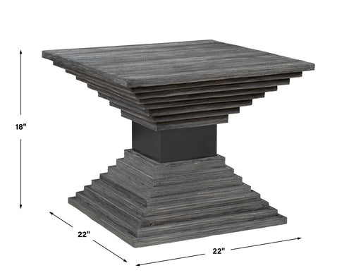 UttermostThe Andes Accent Table Displays A Fun Geometric Construction From Solid Fir Wood. The Table Is Finished In A Medium Gray With Wire Brushed Details ...