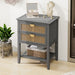 2 Drawer Side Table - Natural Rattan - End Table - Suitable For Bedroom, Living Room, Or Study - Gray
