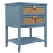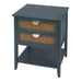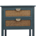 2 Drawer Side Table, Natural Rattan, American Furniture, End Table Suitable For Bedroom, Living Room, Or Study - Blue