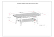 - Features thick slatted rectangle table top with rounded edges, open bottom slatted shelf and four (4)sturdy table legs with levelers