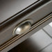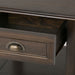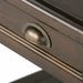 - Transitional design includes rounded molded table top, framed drawers, square,slightly tapered legs and antique bronze classic drawer pulls