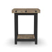 Instantly add inviting character to living spaces with the Carpenter chairside table. Sized perfectly for smaller spaces, this table still has plenty of room to hold your favorite book and cup of coffee. An open lower shelf offers an additional area for storage or to display décor. Inspired by the look of vintage workbenches, this chairside table features distressed acacia wood planks for a reclaimed look, hand-worked metal frames and exposed bolt heads.