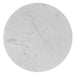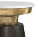 • Features spacious round white marble tabletop, gold powder coated stem and black powder coated pedestal base