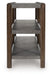 | Details | Made with hardwood solids, oak veneer, MDF substrates and decorative melamine laminate, Dark burnished brown oak finish, Faux cement finish on top and shelf, 2 open display shelves | |