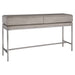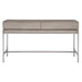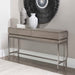 With Modern Simplicity, This Console Table Is Layered In An Oak Veneer And Finished In A Light Mushroom Gray Stain Featuring Two Hidden Storage Drawers. Sits On A Stainless Steel Base Finished In Brushed Nickel.