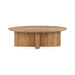 Organic form meets sculptural beauty in this mango wood coffee table. Featuring a gracefully oval tabletop and bold, architectural base, each piece is handcrafted from solid mango wood, revealing the unique grain and warm tone of this sustainable material. A striking centerpiece for living rooms, this modern wood coffee table invites conversation and elevates any space. Perfect for styling with books, art, or your favorite coffee moments.