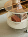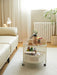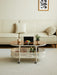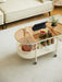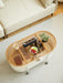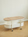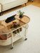 Movable Oval Metal Glass Coffee Table With Storage - White