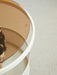 - Tempered Glass Coffee Table: Made of tempered brown glass and sprayed metal, this oval coffee table is both fashionable and sturdy.