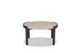 Elevate the look of your living space with the Palette short bunching table, an alluring blend of European design and nature-inspired beauty. A light travertine stone top rests upon a contrasting, curved wood base, evoking the illusion of a floating surface. Part of a table collection with three distinct heights and sizes, the Palette short bunching table can be paired with other versions to create a layered, visually captivating look that expands surface space without crowding a room.