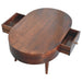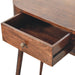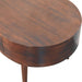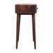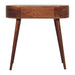 - Rounded Table - This solid wood table has been constructed from 100% solid mango wood in a finish and offers a unique shaped design with rounded edges. It features one small drawer with a shiny knob and Nordic style legs. A great, simple addition to the home.