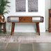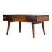 - Artisan Furniture Solid Wood Curved Coffee Table - This Coffee Table offers clean, curved edges and has been constructed from 100% Solid Mango Wood in a rich, finish. Some features include 2 drawers that have a shiny knob, 2 open slots to place any books, photo frames or ornaments and stands on 4 Nordic style legs.