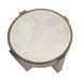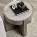 The Sonoma Round End Table features a distressed reclaimed pine base and a concrete laminate top, blending organic design with modern accents. Its unique construction and natural materials make it a striking addition to any space, perfect for adding character and style to your living room or bedroom.