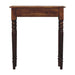 - Turned Legs Drawer Console - Elegance meets functionality in this beautifully handcrafted console table, made from 100% Solid Mango Wood in a rich finish. Featuring a compact drawer adorned with royal brass knob, it provides convenient storage while maintaining a refined aesthetic. The turned legs add a touch of classic sophistication, making it a perfect addition to hallways, living rooms, or entryways. Designed for both durability and timeless appeal, this sustainable piece seamlessly blends traditional craftsmanship with modern practicality, bringing warmth and character to any space.
