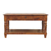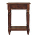 - Turned legs Drawer Table - Classic elegance meets functional design in this beautifully handcrafted table, made from 100% Solid Mango Wood in a rich finish. Featuring gracefully turned legs, a single compact drawer with a brass knob for discreet storage, and a lower shelf for added convenience, this piece blends traditional craftsmanship with modern practicality. Its timeless appeal makes it a perfect addition to bedrooms, living spaces, or hallways adding warmth and sophistication to any home. Sturdy, sustainable, and stylish, this side table is a testament to fine woodworking and refined aesthetics.