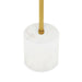 - Features round solid mango wood top, antique brass look stem and solid white marble base