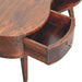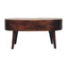 - Light Walnut Wave Coffee Table - This solid wood coffee table has been constructed from 100% solid mango wood in a light walnut finish and offers a unique shaped design with rounded edges. It features one open slot and one drawer with a shiny knob and Nordic-style legs. A great simple and add to the bedroom.
