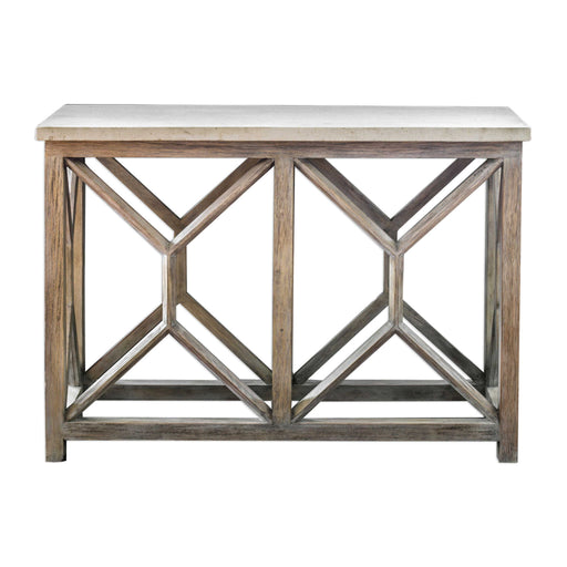UttermostHandcrafted From Solid Mixed Woods With An Natural Ivory Limestone Top, On A Geometric Base Finished In A Warm Oatmeal Wash. True To The Characteri...