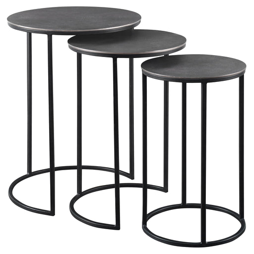 UttermostSet Of Three Functional Nesting Tables Constructed In An Aged Black Iron, Featuring A Textured Cast Aluminum Slab Top Finished In A Plated Antique ...