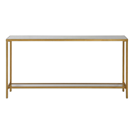 UttermostClassic And Minimalistic, This Narrow Console Table In Iron Is Finished With Lightly Antiqued Gold Leaf, Inset With A Beveled Mirrored Top, And Gal...