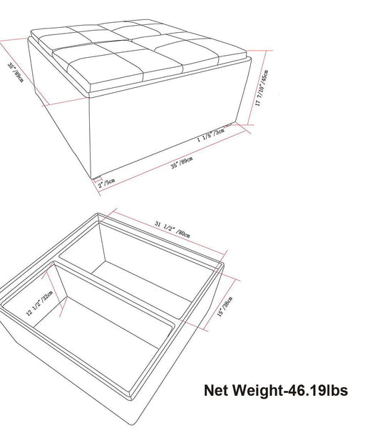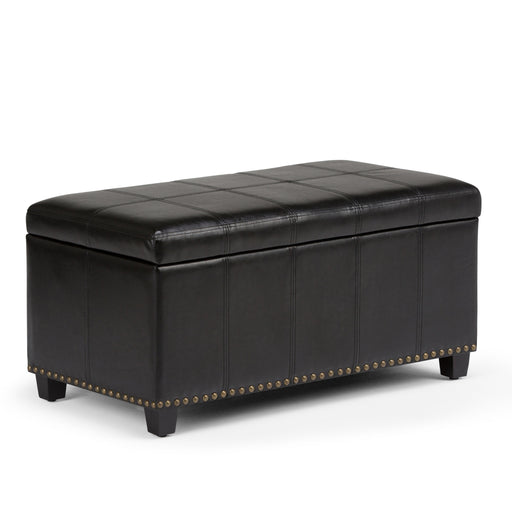 Simpli-HomeHand constructed using solid wood, engineered woods and high density foam Upholstered in a durable Vegan Faux Leather Features large interior stor...