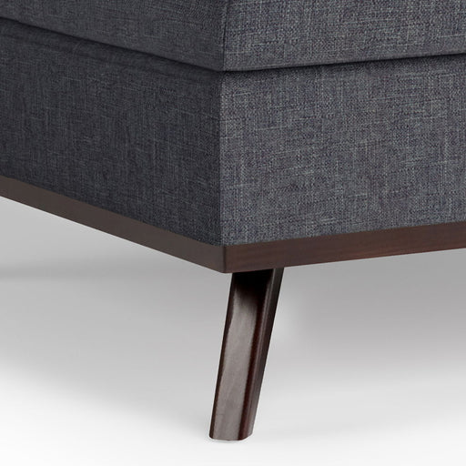 Simpli-HomeHand constructed using solid wood, engineered woods and high density foam Upholstered with a durable Slate Grey Linen Look Fabric Features a hydra...