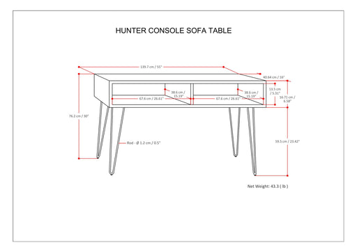 Simpli-HomeDIMENSIONS: 14" D x 64" W x 30" H Handcrafted with care using the finest quality solid Rubberwood and 1.2 inch Metal Hand-finished wood with a Wal...