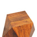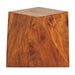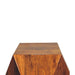 - Chestnut Abstract End Table - This one sided geometric side table has a refined shape and fits into any type of interior either country homes or compact city apartments. The base is constructed from 100% solid mango in a chestnut finish and is made to fit many types of woods and designs of furniture.