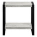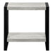 - Design and Finish: This 2-tier accent table features a thick, rectangular tabletop with a reclaimed wood-look finish, complemented by a fixed lower shelf. Its versatile design makes it a perfect fit for any room needing a stylish side table.