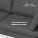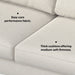 - The generously sized sofa for 3 features 2 wide seat cushions with high-density foam cores and feather/fiber toppers wrapped in high-quality polyester, plus 2 thick back cushions 2 large throw pillows filled with feathers and fiber for a soft, comfortable feel.