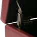 - Features large interior storage space with child safety hinge to prevent lid slamming